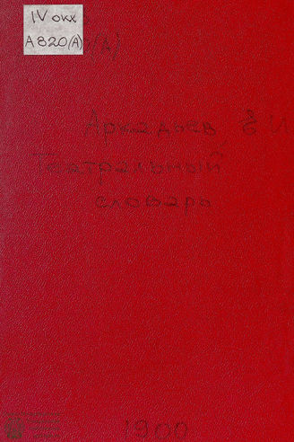 Аркадьев, Елпидифор Иванович (драматург, писатель; 1856–1917) Театральный словарь : [материалы] / Е. И. Аркадьев. — Сызрань : Тип. Е. М. Синявского, 1900. — [4], 44 с.