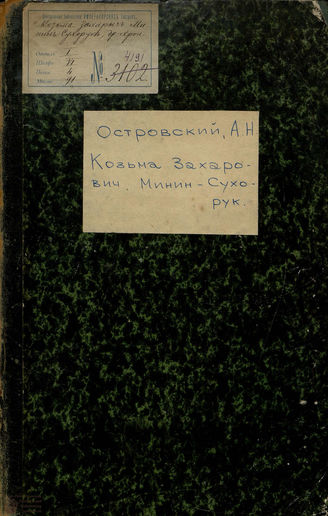 Козьма Захарьич Минин-Сухорук : драматическая хроника в 5 действиях, в стихах / соч. А. Н. Островского. — [Санкт-Петербург], [1866]. — 126 л.
